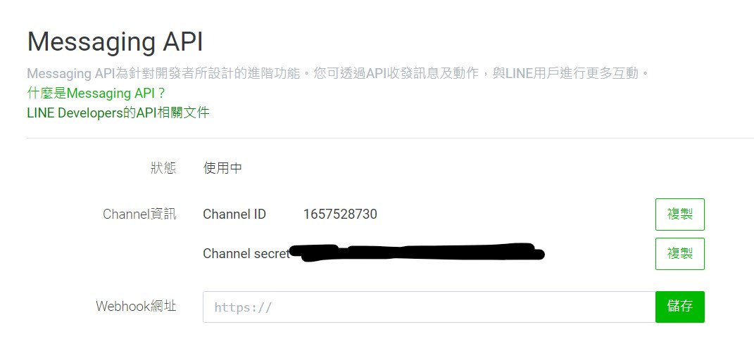 看了看我們工程師給我的程式碼,又再看了一些有關 LINE Messaging API 的說明,我大概了解,如果我只是要向所有的朋友送訊息,取得 APP 的 AccessToken 後就能開始寫程式使用,如果是想要讓帳號可以跟其它人應答的話,你還需要提供給它一個 webhook 的網址,再配合你的 Channel ID 與 Channel secret 來寫程式